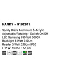 HANDY Sandy White Aluminium & Acrylic Adjustable/Rotating - Switch On/Off LED Samsung 230 Volt 3000K Backlight 6 Watt 310Lm Reader 3 Watt 210Lm IP20 L: 2 W: 13.65 H: 55 cm
