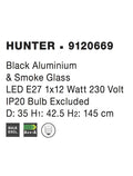 HUNTER Black Aluminium & Smoke Glass LED E27 1x12 Watt Bulb Excluded D: 35 H1: 42.5 H2: 130 cm