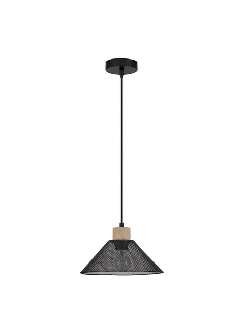 IAN Matt Black Metal Natural Wood LED E27 1x12 Watt 230 Volt IP20 Bulb Excluded D: 26 H: 110 cm Adjustable height