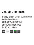 JOLINE Sandy Black Metal & A luminium White Opal Glass LED 40 Watt 240 Volt 2580Lm 3200K IP20 D: 50 H: 155 cm