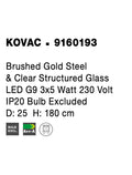 KOVAC Brushed Gold Steel & Clear Structured Glass LED G9 3x5 Watt 230 Volt IP20 Bulb Excluded D: 25 H: 180 cm