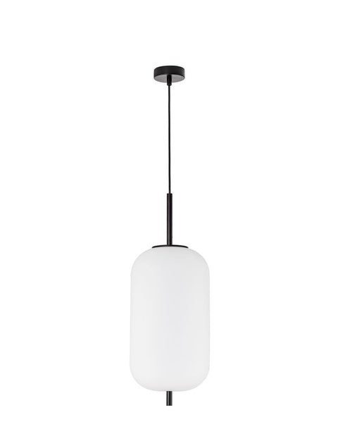 LATO Black Metal & Opal Glass Black Fabric Wire LED E27 1x12 Watt 230 Volt IP20 Bulb Excluded D: 22 H: 120 cm Adjustable height