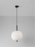 LATO Black Metal & Opal Glass Black Fabric Wire LED E27 1x12 Watt 230 Volt IP20 Bulb Excluded D: 30 H: 120 cm Adjustable height