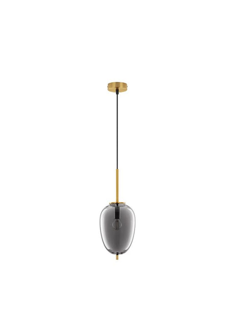 LATO Brass Gold Metal & Smoky Glass Black Fabric Wire LED E14 1x5 Watt 230 Volt IP20 Bulb Excluded Adjustable height
