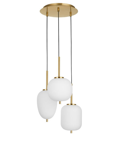 LATO Opal Glass Antique Brass Metal Black Fabric Wire LED E14 3x5 Watt 230 Volt IP20 Bulb Excluded D: 30 H: 120 cm