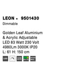 LEON Golden Leaf Aluminium & Acrylic Adjustable LED 83 Watt 230 Volt 4980Lm 3000K IP20 L: 61 H: 150 cm