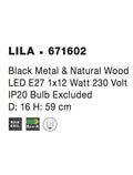 LILA Black Metal & Natural Wood LED E27 1x12 Watt 230 Volt IP20 Bulb Excluded D: 16 H: 59 cm