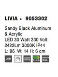 LIVIA Sandy Black Aluminum & Acrylic LED 30 Watt 230 Volt 2422Lm 3000K IP44 L: 96 W: 14 H: 6 cm