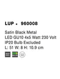 LUP Satin Black Metal LED GU10 4x5 Watt 230 Volt IP20 Bulb Excluded L: 51 W: 8 H: 10.9 cm