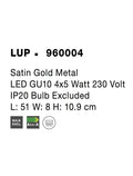 LUP Satin Gold Metal LED GU10 4x5 Watt 230 Volt IP20 Bulb Excluded L: 51 W: 8 H: 10.9 cm