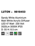 LUTON Sandy White Aluminium Matt White Acrylic Diffuser LED 47 Watt 230 Volt 3525Lm 3000K IP20 D: 55 H: 8.5 cm