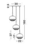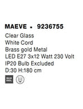 MAEVE Clear Glass & Brass Gold Metal White Cord LED E27 3x12 Watt 230 Volt IP20 Bulb Excluded D: 30 H: 180 cm Adjustable height
