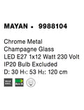MAYAN Chrome Metal Champagne Glass LED E27 1x12 Watt 230 Volt IP20 Bulb Excluded D: 30 H1: 53 H2: 120 cm