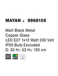 MAYAN Matt Black Metal Copper Glass LED E27 1x12 Watt 230 Volt IP20 Bulb Excluded D: 30 H1: 53 H2: 120 cm