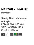MENTON Sandy Black Aluminium & Acrylic LED 43 Watt 230 Volt 3013Lm 3000K IP20 D: 52 H: 120cm