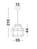 MIA Natural Ratan Black Fabric Wire & Base LED E27 1x12 Watt 230 Volt IP20 Bulb Excluded D: 35 H1: 44 H2: 215 cm