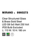 MIRANO Clear Structured Glass & Brass Gold LED G9 5x5 Watt 230 Volt IP20 Bulb Excluded L: 113 W: 10 H: 180 cm