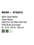 MOND Satin Gold Metal Clear Glass LED E14 1x5 Watt 230 Volt IP20 Bulb Excluded D: 13 H: 120 cm