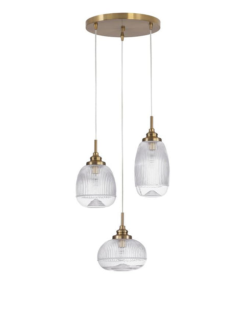 MOND Satin Gold Metal Clear Glass LED E14 3x5 Watt 230Volt IP20 Bulb Excluded D: 49 H: 120 cm
