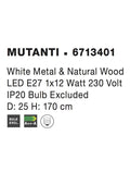 MUTANTI White Metal & Natural Wood LED E27 1x12 Watt 230 Volt IP20 Bulb Excluded D: 25 H: 170 cm