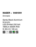 NAGER Dimmable Sandy Black Aluminium & Acrylic LED 29 Watt 230 Volt 1684Lm 3000K IP20 D: 60 H: 120 cm