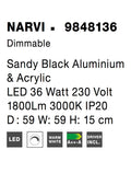 NARVI DimmableSandy Black Aluminium& Acrylic LED 36 Watt 230 Volt1800Lm 3000K IP20D : 59 W: 59 H: 15 cm
