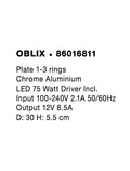 OBLIX Plate 1-3 rings Chrome Aluminium LED 75 Watt Driver Incl. D: 30 H: 5.5 cm