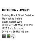OSTERIA Shining Black Steel Outside Matt White Inside LED E27 1x12W Bulb Excluded D: 46 H1: 26 H2: 115 cm