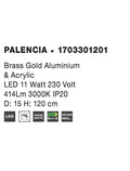 PALENCIA Satin Gold Aluminium & Acrylic LED 11 Watt 230 Volt 414Lm 3000K IP20 D: 15 H: 120 cm