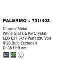 PALERMO Chrome Metal White Glass & K9 Crystal LED E27 3x12 Watt 230 Volt IP20 Bulb Excluded D: 38 H: 9 cm