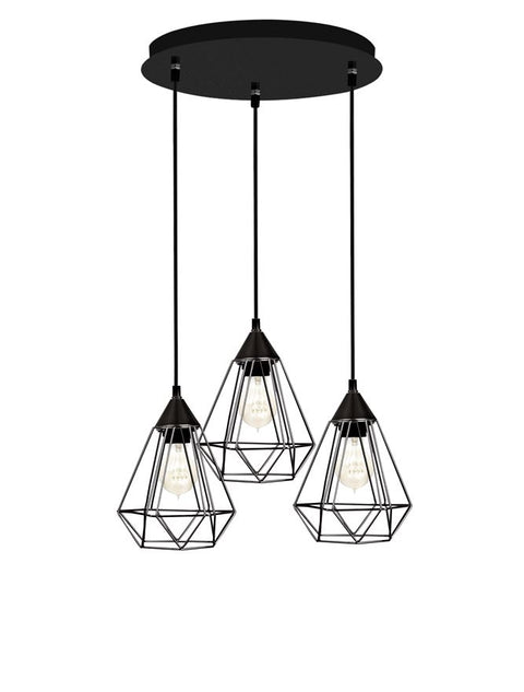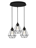 PAOLO Pendant Light Matt Black Metal Black & White Fabric Wire LED E27 3x12 W D: 30 H: 134 cm