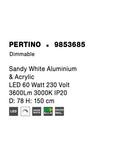 PERTINO Dimmable Sandy White Aluminium & Acrylic LED 60 Watt 230 Volt 3600Lm 3000K IP20 D: 78 H: 150 cm