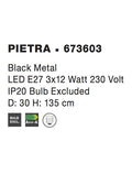 PIETRA Pendant Light Black Metal LED E27 3x12 W D:30 H:135cm