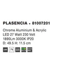 PLASENCIA Chrome Aluminium & Acrylic LED 27 Watt 230 Volt 1890Lm 3000K IP20 D: 49.5 H: 11.5 cm