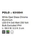 POLO White Opal Glass Chrome Aluminium LED E14 2x5W Bulb Excluded IP44 L: 39.5 W: 5.5 H: 5 cm