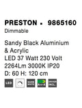 PRESTON Dimmable Sandy Black Aluminium & Acrylic LED 37 Watt 230 Volt 2264Lm 3000K IP20 D: 60 H1: 4 H 2: 120 cm