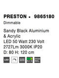 PRESTON Dimmable Sandy Black Aluminium & Acrylic LED 50 Watt 230 Volt 2727Lm 3000K IP20 D: 80 H1: 4 H 2: 120 cm
