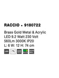 RACCIO Gold Metal & Acrylic LED 9.2 Watt 230 Volt 560Lm 3000K IP20 L: 6 W: 12 H: 74 cm