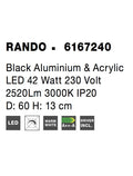 RANDO Black Aluminium & Acrylic LED 42 Watt 230 Volt 2520Lm 3000K IP20 D: 60 H: 13 cm