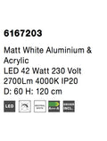 RANDO Matt White Aluminium & Acrylic LED 42 Watt 230 Volt 2700Lm 4000K IP20 D: 60 H: 120 cm