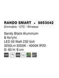 RANDO SMART Sandy Black Aluminium & Acrylic LED 50 Watt 230 Volt 3250Lm 3000K - 4000K IP20 D: 60 H: 9 cm