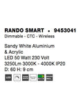 RANDO SMART Sandy White Aluminium & Acrylic LED 50 Watt 230 Volt 3250Lm 3000K - 4000K IP20 D: 60 H: 9 cm