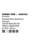 RANDO THIN Brushed Silver Aluminium & Acrylic LED 30 Watt 230 Volt 1950Lm 3000K IP20 D: 38 H: 120 cm