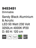 RANDO THIN Sandy Black Aluminium & Acrylic LED 50 Watt 230 Volt 3250Lm 4000K IP20 D: 60 H: 120 cm