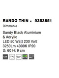 RANDO THIN Sandy Black Aluminium & Acrylic LED 50 Watt 230 Volt 3250Lm 4000K IP20 D: 60 H: 9 cm