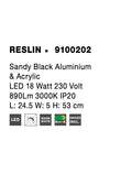 RESLIN Sandy Black Aluminium & Acrylic LED 18 Watt 220 Volt 890Lm 3000K IP20 L: 53 W: 24.5 H: 5 cm