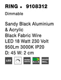 RING Sandy Black Aluminium & Acrylic Black Fabric Wire LED 18 Watt 230 Volt 950Lm 3000K IP20 D: 45 W: 2 cm