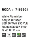 RODA White Aluminium Acrylic Diffuser LED 30 Watt 230 Volt 1800Lm 3000K IP20 D: 40 H: 10 cm
