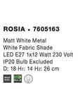 ROSIA Matt White Metal White Fabric Shade LED E14 1x5 Watt 230 Volt IP20 Bulb Excluded D: 18 H: 26 cm