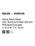 SALVA Sandy Black Metal LED GU10 2x10 Watt 230 Volt IP20 Bulb Excluded L: 31.5 W: 7 H: 16 cm